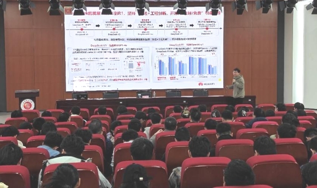 徐帅从产业发展、就业趋势、能力要求和成长路径四个维度展开深入分析。在产业发展方面,他介绍当前大模型技术的演进趋势及其对各行业的变革影响;在就业趋势部分,重点讲解大模型相关岗位的增长态势及企业对人才能力要求的变化;关于“学什么”,他详细剖析自然语言处理、计算机视觉、生成式应用开发等核心领域的技术要点;针对“如何实现”,他分享华为全栈课程体系的设计理念,并推荐OpenI启智平台和ModelArts等实训资源,帮助同学们构建系统的学习路径。徐帅鼓励同学们把握大学生涯中的最后一年时间,学习并掌握大模型知识,明确自身就业目标,找准方向,为未来就业创业夯实基础。