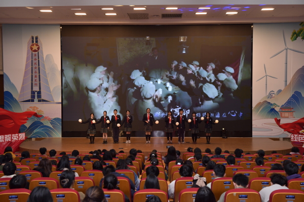 整场活动形式多样,内容丰富,涵盖诗歌朗诵、实践宣讲、红色故事讲演、短剧展演、歌舞表演等。自动化学院浪潮实践队带来的“红色实践・青年足迹” 成果分享,生动展现革命先辈英勇事迹和大无畏的革命精神,原创短剧《王孝和》展演(节选), 再次引发了当代青年对先烈们“为有牺牲多壮志,敢教日月换新天”的豪迈革命情怀的强烈认同。我校大中小学思想政治教育一体化共建单位师生们带来的红色故事讲述和励志歌曲串烧,让现场师生更理解了今天幸福生活的来之不易。
