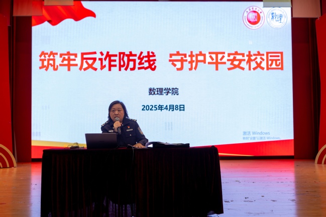 为增强学生防范电信网络诈骗意识,提升自我保护能力,4月8日下午,数理学院在临港校区大学生活动中心演艺厅举办“筑牢反诈防线,守护平安校园”为主题的校园安全专题讲座。学院2024级学生及辅导员、其他班级安全员和学生代表与会,会议由辅导员王亚霖主持。