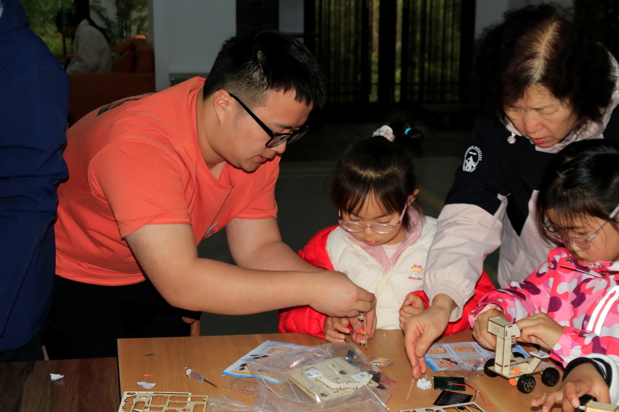 活动现场,志愿者化身“科学小导师”,通过两大核心实验点燃孩子们的探索热情。在静电气球实验环节,志愿者将气球反复摩擦后,纸屑瞬间吸附其上。“原来摩擦会产生静电!”孩子们争相体验,在亲手操作中解锁物理现象的神奇密码。随后太阳能小车组装环节更将活动推向高潮,志愿者细致讲解光能转化原理后,指导孩子们亲手组装小车,感受光能转换为电能,再驱动小车前行的神奇过程,让他们在实践中理解新能源的魅力。