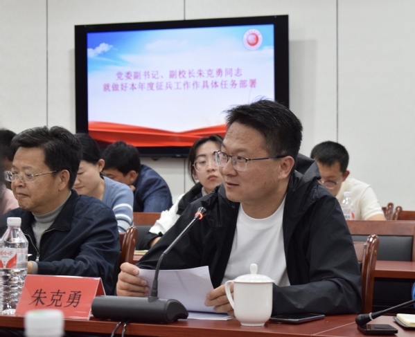 校党委副书记、副校长朱克勇就本年度征兵工作作具体部署。他指出,征兵工作人员要进一步提高认识,严格落实,把握好报名初筛、政治考核、审批定兵等关键环节;进一步摸清底数、分类施策、精准对接,做好应征青年涉及到的各项保障工作;校内部门联动,用好各类红色资源,弘扬典型,构建全方位、多层次的宣传教育体系,让参军报国成为青年学生的价值追求。