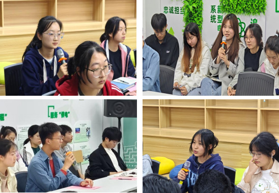 在交流研讨环节,学生围绕三个主题踊跃发言。在思想成长与责任担当方面,同学们结合“推优”标准,提出“优秀是标杆更是责任”“以行动诠释担当”等观点,并计划通过组建学习小组、参与志愿服务等方式带动集体进步。在学业发展与挑战应对方面,针对专业课程难度大、实践资源不足等问题,同学们建议增设学科竞赛指导、开放更多实验室资源。周婷一一予以回应,表示将强化联动协同,推动相关举措尽快落实落地。在生活适应与需求反馈方面,同学们围绕校园生活适应难题,提出建立跨年级文体活动平台、拓展校内外志愿服务基地等建议。学院表示将整合学生需求,进一步完善多元化成长支持体系。