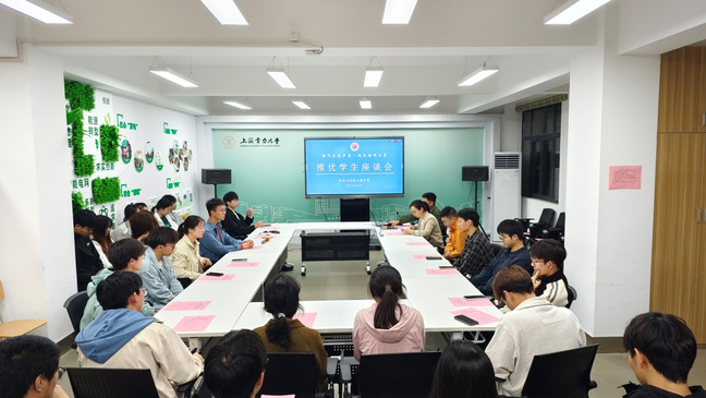 为深入落实立德树人根本任务,搭建师生交流平台,发挥榜样引领作用,4月21日,能机学院“书记院长有约”系列活动之2024级“推优”本科学生座谈会在临港校区6号一站式学生社区举行。此次活动主题为“倾听成长声音·遇见榜样力量”。学院党委副书记周婷、2024级辅导员张财亮、优秀学生代表曾镜文及本科2024级“推优”学生共聚一堂,围绕思想成长、学业发展、生活适应等主题展开深入交流,会议由张财亮主持。