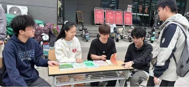 4月24日,学院在一食堂门口开展一场别开生面的“优秀图书置换会”书香集市活动,吸引了众多同学驻足参与。此次活动共有两大特色摊位,一是二手书交易摊位,方便同学们交换彼此喜爱的书籍,并且分享彼此之间的心得;二是专业书籍揭秘摊位,为同学们讲解学习需用到的书籍,帮助同学们明晰学习方向。本次书香市集不仅为同学们提供了一个交流阅读心得、共享图书资源的平台,也激发了大家对阅读的热爱和对专业知识的探索热情。