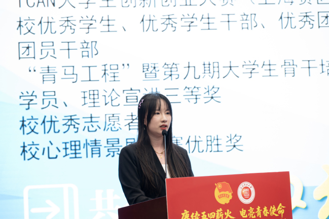 “知行杯”上海市大学生社会实践项目大赛一等奖获奖项目(绿色电力助推崇明经济发展)团队负责人,来着经济与管理学院的刘宇琛从立足一线的奋进者、立足实际的求知者、对策建议的提出者等方面分享了taptap体育青年结合专业所学,把论文写在祖国大地上的青春誓言。