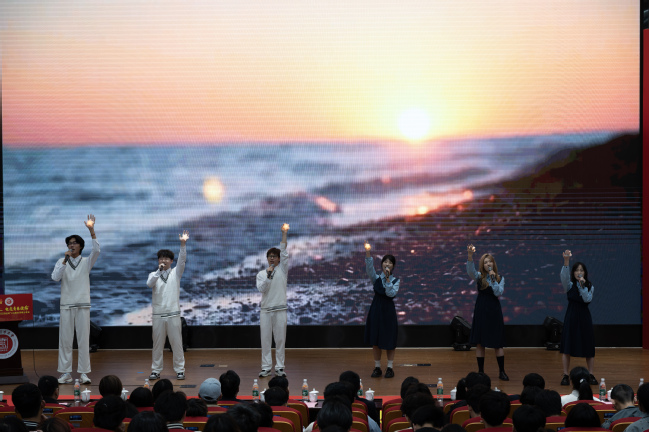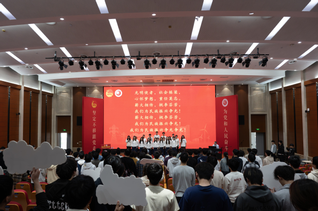 “薪火相传,桃李芬芳,我们为民族振兴争光”,青春分享会在外国语学院2024083班和与会师生深情演唱校歌《光明使者》的歌声中落下帷幕。