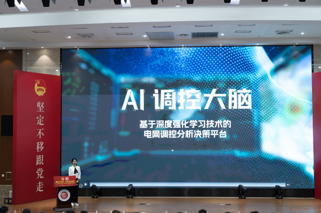 国网华东分部优秀青年代表、调度控制中心主管余少琪以《AI调控大脑——基于深度强化学习技术的电网调控分析决策平台》为主题,分享了国网华东分部青年创新开发“AI调控大脑”,有效克服新型电力系统调度运行面临严峻挑战的奋斗故事。