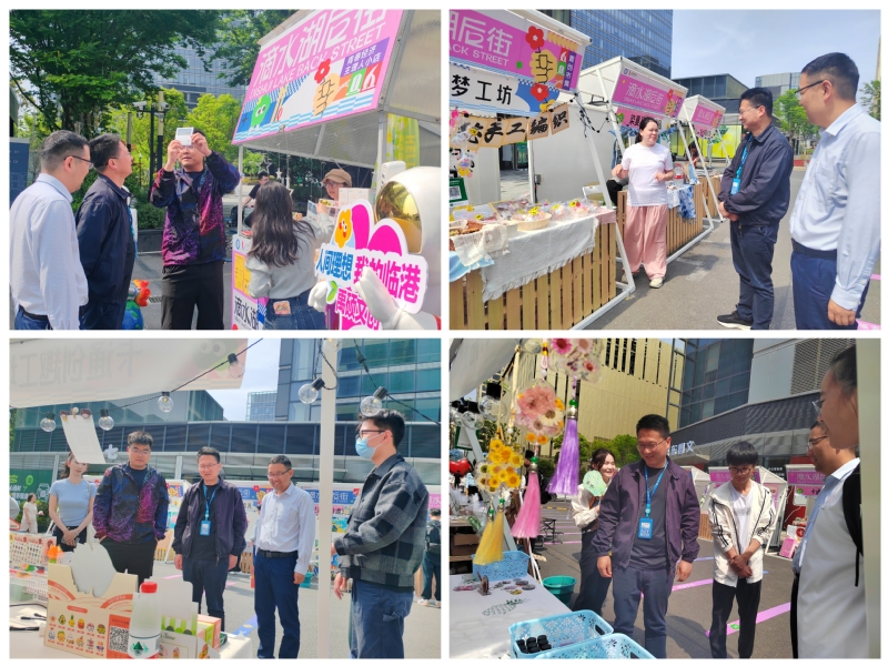 在熙熙攘攘的滴水湖后街,我校四支学生创业团队成功入驻青年创业市集。我校学生将创意转化为实际的产品或服务,有DIY萌宠挂件的“织梦工坊”,有能够封存滴水湖植物的滴胶手作“植韵拾光”,还有通过快拼积木获得满满成就感的“卡通创趣工坊”,以及可以定制气球得到甜蜜暴击的“花样气球”。游客们纷纷在摊位前驻足问询购买。杨浩昊介绍,青创市集是第十四届“蓝海·逐梦”大学生创业训练营赛道之一,组委会通过评审、筛选出16个青年大学生优质创业项目,并为团队提供1000元创业基金和后勤支持等,创业团队可在滴水湖后街进行为期一月的创业售卖活动,对于效益高转化的好项目,组委会将提供更多的创业支持和指导。朱克勇与创业学生们进行亲切交流,了解创业缘起、供货来源、合作途径、营收情况等,对青年学生们主动走出课堂、走进社会,用创意转化成生动鲜活的实践成果表示肯定,鼓励青年们继续保持敢想敢做的锐气。