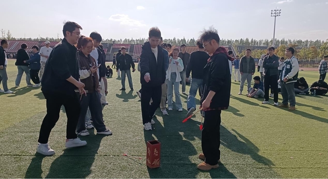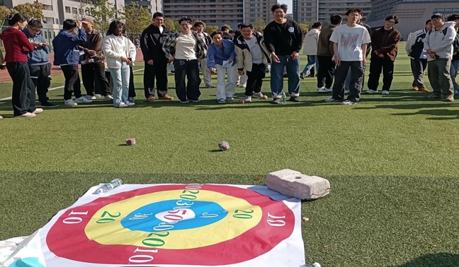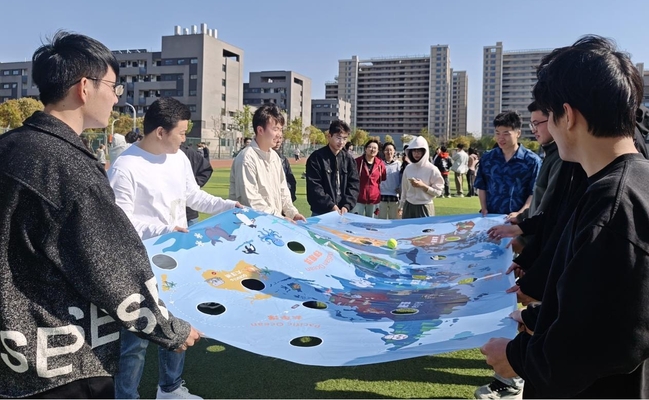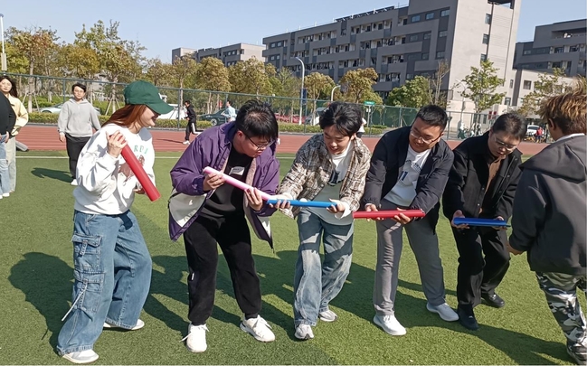 本次素质拓展活动设置珠行万里、环游世界、沙包投掷、投壶、拔河等特色活动。沙包投掷和投壶现场,同学们全神贯注,以精准的技巧展现风采;珠行万里中,团队成员默契配合,用接力传递的方式诠释协作智慧;环游世界项目则激发集体智慧,大家群策群力,在限时挑战中突破自我。活动中,导师们与学生并肩作战,共同制定策略、攻克难关。最后以专业为单位的拔河比赛将活动推向高潮,各专业参赛队伍士气高涨,随着裁判员的一声令下,双方奋力拼搏,全场师生齐心协力、鼓劲加油,场面气氛热烈。