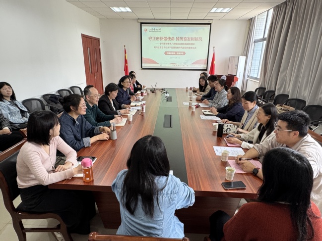 为有效推进深入贯彻中央八项规定精神学习教育,进一步加强党的作风建设,形成抓作风促工作、抓工作强作风的良性循环,5月8日,外国语学院与数理学院在数理楼B301会议室开展“守正创新强使命 踔厉奋发树新风”联组学习。两学院党委书记、副书记、党支部书记及教辅人员参加学习,共探党建创新、思政育人及协同治理实践路径。会议由外国语学院党委书记余静主持。