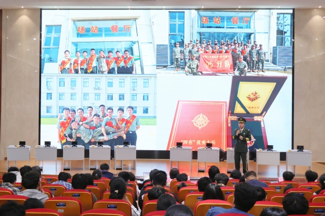 退伍学生代表董其垚分享了自己难忘的军旅生活,讲述在部队里每天充满挑战的艰苦训练,在执行任务过程中体会到团队协作的力量,以及与战友们结下的深厚情谊等,特别强调军旅生活不光让他学会了坚韧与担当,更成为生命中珍贵的记忆。