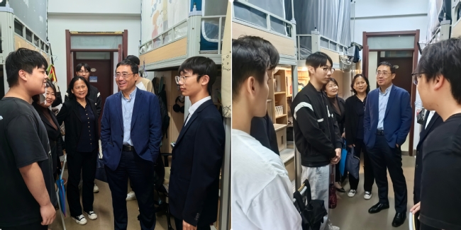 座谈会前,符杨走访临港校区2号学生公寓楼,与预科生、本科生亲切交谈,详细询问学生们的学习情况、未来职业规划以及遇到的困难和问题。他对同学们的积极进取精神表示充分肯定,并鼓励同学们坚定理想信念,夯实专业基础,练就过硬本领,注重劳逸结合,积极参与学科竞赛与社会实践,在团队协作中提升综合能力,在实现民族复兴的赛道上奋勇争先,努力成长为德智体美劳全面发展的社会主义建设者和接班人。