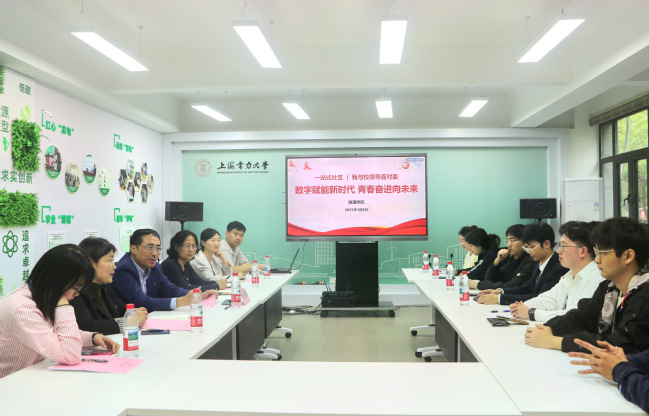 为深入贯彻党的二十大和二十届三中全会精神及全国教育大会精神,全面落实习近平总书记关于教育的重要论述,特别是关于教育数字化的重要指示精神,深入推进“一站式”学生社区育人工作,5月8日下午,副校长符杨在临港校区“一站式”学生社区综合服务中心与数理学院学生代表开展座谈会。数理学院党委书记徐广新、党委副书记赵月琴、辅导员兼团委书记康鸿轩、研究生秘书兼数学学科研究生党支部书记汪菲杨及辅导员王亚霖与会。会议由赵月琴主持。