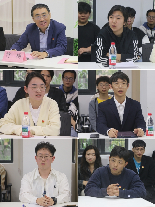 符杨认真聆听同学们的发言,对大家积极进取的学习态度和专业思考表示赞赏,并用具体事例生动详细有针对性地逐一解答同学们的问题和困惑。他强调,科研学习中的困惑是成长的宝贵财富,同学们要创新运用多种算法,把握数字经济发展趋势。他希望同学们厚植家国情怀,涵养进取品格,在学习和科研中既要拓宽视野、关注学科前沿、勇于突破创新,又要勤奋努力、夯实专业基础、锻造过硬本领,适应中国式现代化的发展需求,勇于担当作为,在祖国最需要的领域建功立业,努力成长为专业功底扎实、创新思维活跃、家国情怀深厚的栋梁之材。