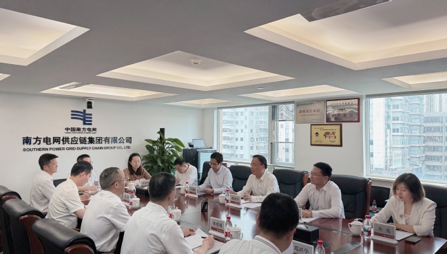 顾春华一行还走访调研了南方电网供应链集团,了解公司在物资采购、招标管理、物流服务等方面的数字化管理创新实践,受到公司董事、总经理、党委副书记郑之茂,副总经理郑帅以及相关部门负责人的热情接待。