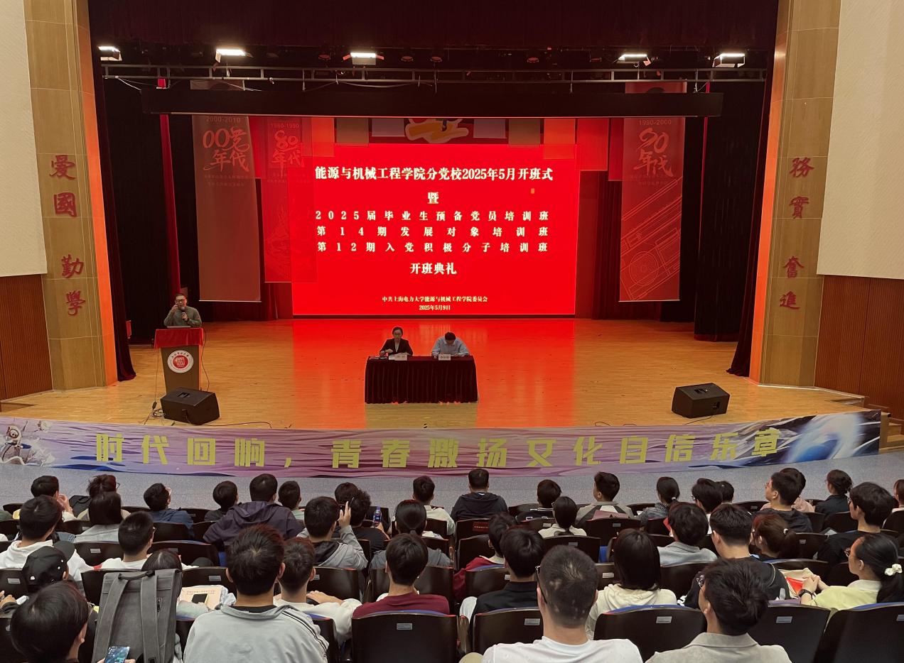 5月9日,能源与机械工程学院分党校在临港校区大学生活动中心举行2025年5月党校开班式。第12期入党积极分子培训班、第14期发展对象培训班及2025届毕业生预备党员培训班全体学员参加开班式。开班式由学院党委委员、专职组织员王喆主持。
