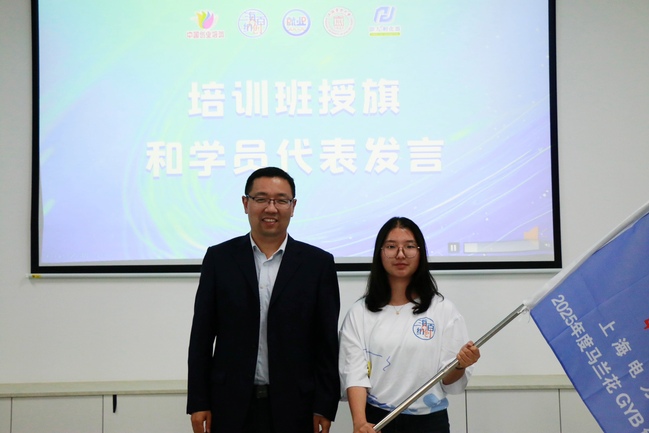 校团委书记兼学工部副部长马国祥为培训班学员代表授旗。学员代表在发言中表示,将珍惜学习机会,以实践探索真知,力争交出高质量创业答卷。