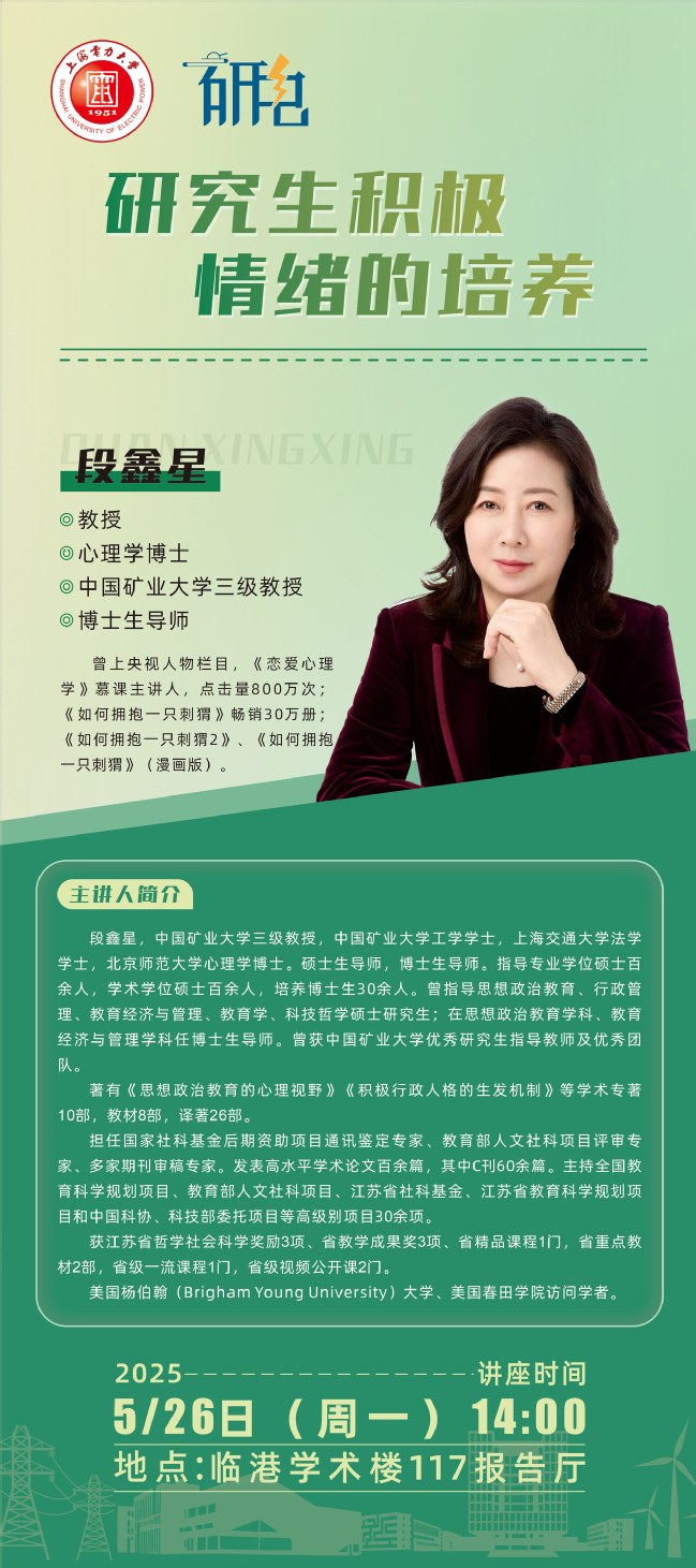 主讲人简介:段鑫星,中国矿业大学三级教授,中国矿业大学工学学士,上海交通大学法学学士,北京师范大学心理学博士。硕士生导师,博士生导师。指导专业学位硕士百余人,学术学位硕士百余人,培养博士生30余人。曾指导思想政治教育、行政管理、教育经济与管理、教育学、科技哲学硕士研究生;在思想政治教育学科、教育经济与管理学科任博士生导师。曾获中国矿业大学优秀研究生指导教师及优秀团队。