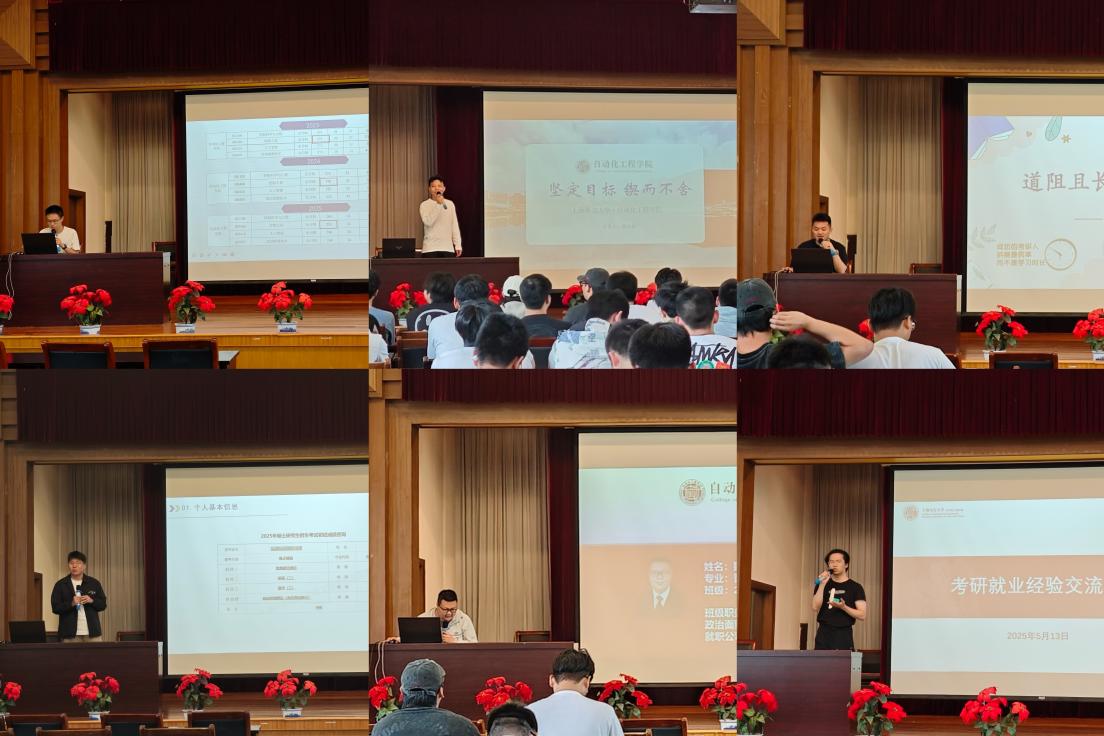 为积极应对当前就业与考研新形势,帮助同学们更好地掌握就业形势,明确发展目标,提升实战经验,自动化工程学院分别于5月13日、5月20日召开两场《大学生就业与创业实务》课程之考研就业经验交流会,活动由学院星耀领航团中21级本科生主讲,共邀请12名成功考研上岸和已就业的学长学姐进行经验分享。学院辅导员孙怀芹、苏扬出席并主持会议,全体2022级本科生及部分2023级本科生参会。本次分享会分为考研经验交流与就业经验分享两大板块。