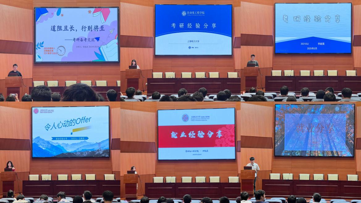 5月20日,自动化、核控专业专场经验交流会在行政中心一楼报告厅举行。张锐波、谢和岑、李毅展三位成功考研上岸学长从院校专业选择心路历程,到备考期间学习规划及经验,再到复试环节的实战技巧,毫无保留地分享自己的“上岸秘籍”。他们重点强调要制定科学合理的学习计划,并建议同学们根据自身情况灵活调整复习节奏,鼓励大家在逐梦路上坚定信心,合理调节压力。吕姝君、邓凯燕、唐钰城三位已成功签约就业的学长围绕招聘信息收集、求职规划、简历制作要点及面试技巧等方面分享了个人“通关经验”。他们强调实习实践的重要性,深入讲述如何在求职过程中突出自己的专业优势,并强调团队协作、沟通能力等综合素质在职场中的重要性。交流会现场气氛热烈。