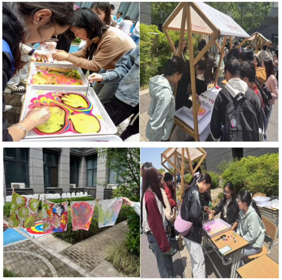 学院先后在学院师生文化节及学校心理健康季开幕式推出水拓画丝巾体验活动。活动通过“流动的色彩艺术”搭建心灵沟通桥梁,让师生在指尖创作中释放压力、传递温暖,成为两场文化活动中“柔软”的亮点。