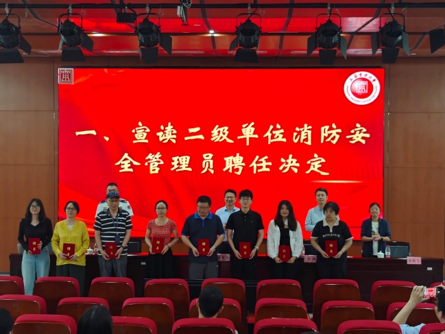 金炜宣读学校关于聘任二级单位消防安全管理员的决定并向消防安全管理员代表颁发工作聘书,同时向学校消防安全管理员们详细解读《taptap官方版下载安装消防安全管理办法》。