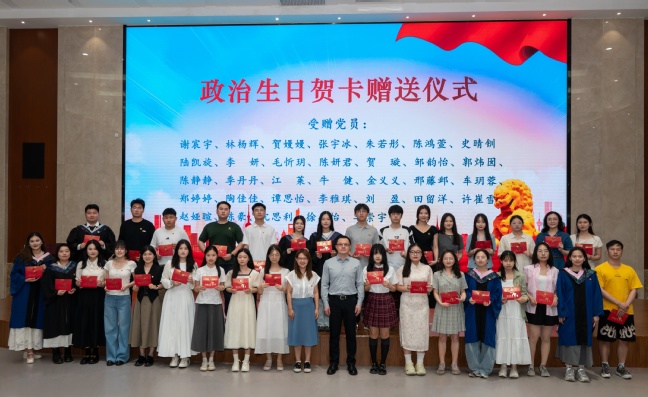 随后,学院为上半年发展党员举行政治生日仪式。张艺、孟延新为毕业党员颁发政治生日贺卡,勉励他们铭记初心使命,立足岗位建功立业。周颖详细讲解毕业生党员组织关系转接流程,强调规范操作的重要性,站好毕业生党员离校前的最后一班岗。