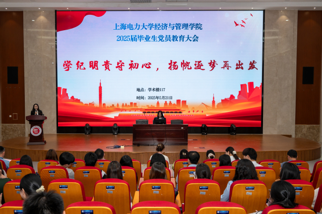 5月21日下午,经济与管理学院党委在临港校区学术楼117会议室召开2025届毕业生党员教育大会。学院党委书记张艺、学院党委副书记孟延新、专职组织员周颖及各学生党支部书记、毕业班辅导员出席,全体毕业生党员参加。