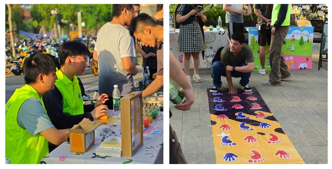 活动现场特别设置露天驻唱舞台,邀请毕业班学生张茂、张础岩、张亮及院十佳歌手张祉言倾情献唱。《一路向北》《凤凰花开的路口》《同桌的你》《那些年》《入海》等经典校园歌曲引发全场共鸣,摊位暖黄的串灯与往来人影交织成画,婉转歌声中,有人低声跟唱,有人举灯轻晃,点点光影摇曳如星河倾泻。更有即兴加入的“观众点歌”环节,泰国留学四姐妹以一首《Body Shaming》唱出“打破偏见,拥抱自我”的宣言,掀起一场关于自信与勇气的声浪,将夏夜的热烈氛围推向高潮。