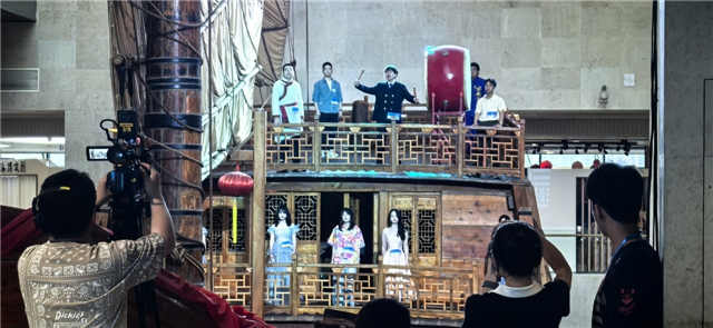 身着汉服的参赛选手于佳滢同学分享道,“在直接抽签讲解展品的环节,我需要在短时间内控制好场面,并结合展板向观众清晰地讲解展品。这种沉浸式主持的经历十分难得,它不仅考验了我的应变能力,也让我在实践中不断提升自己的主持技巧。”谈及讲述航海历史的前期准备,于佳滢告诉记者,“前期我观看了航海的纪录片和科普视频,还研读了人工智能科技发展的相关报道。通过学习,我拓宽了自己的知识储备,为在大赛中更好地展现自己打下了坚实的基础。”