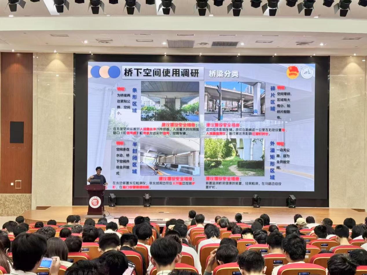 随后,“桥下空间”实践队队长陈浩同学生动讲述团队深入城市角落,开展桥下空间功能调研与改造设计的实践故事。从前期实地勘察、数据采集,到与社区居民、政府部门沟通协作,团队用脚步丈量城市温度,以创新思维为城市空间优化建言献策。