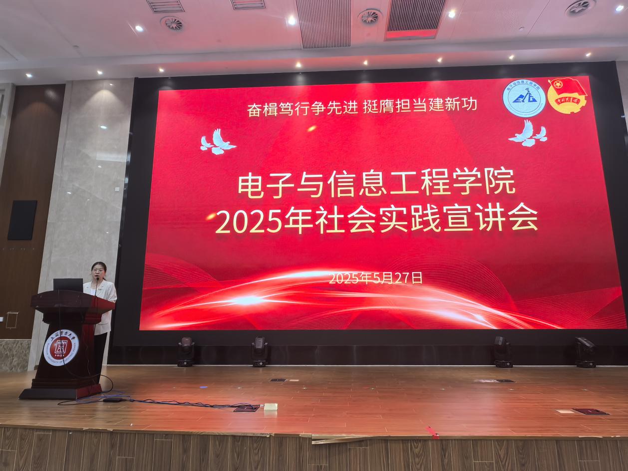 为激励青年学子扎根实践、服务社会,以实际行动践行新时代使命担当,5月27日,电信学院在学术楼117报告厅开展2025年暑期社会实践宣讲会。学院党委副书记周冬梅、学院团委挂职副书记李骁、辅导员刘甘雨及全体大一学生参会。