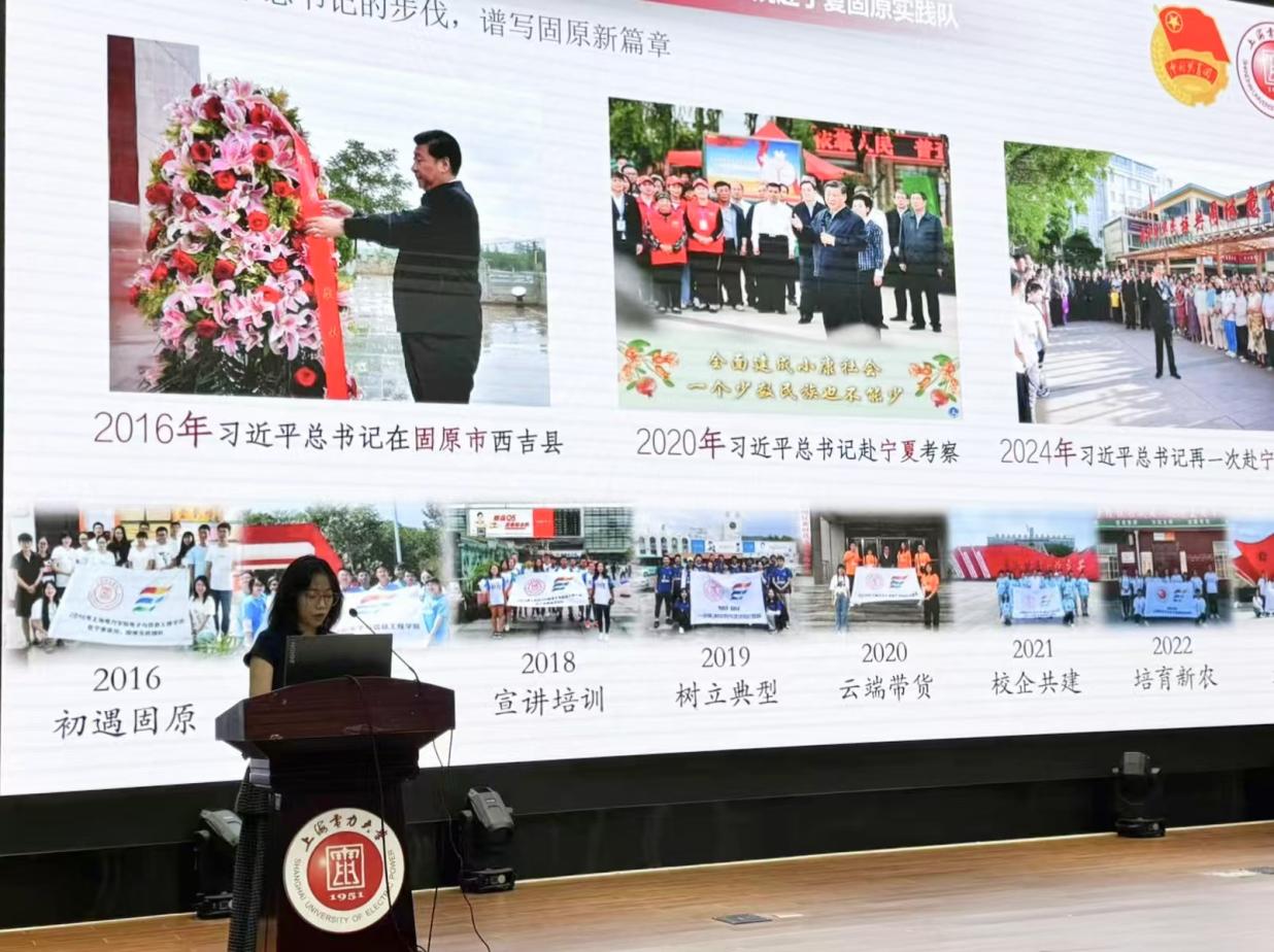 “宁夏固原”实践队队长韩佳璐同学分享团队与宁夏固原九年的深厚情缘。九年来,团队接力奔赴西部,在支教帮扶、乡村信息化建设、特色产业调研等领域持续发力,用青春与汗水助力乡村振兴。韩佳璐说到:“每一次实践都是双向奔赴,我们在服务中收获成长,也见证了固原的点滴成就。”