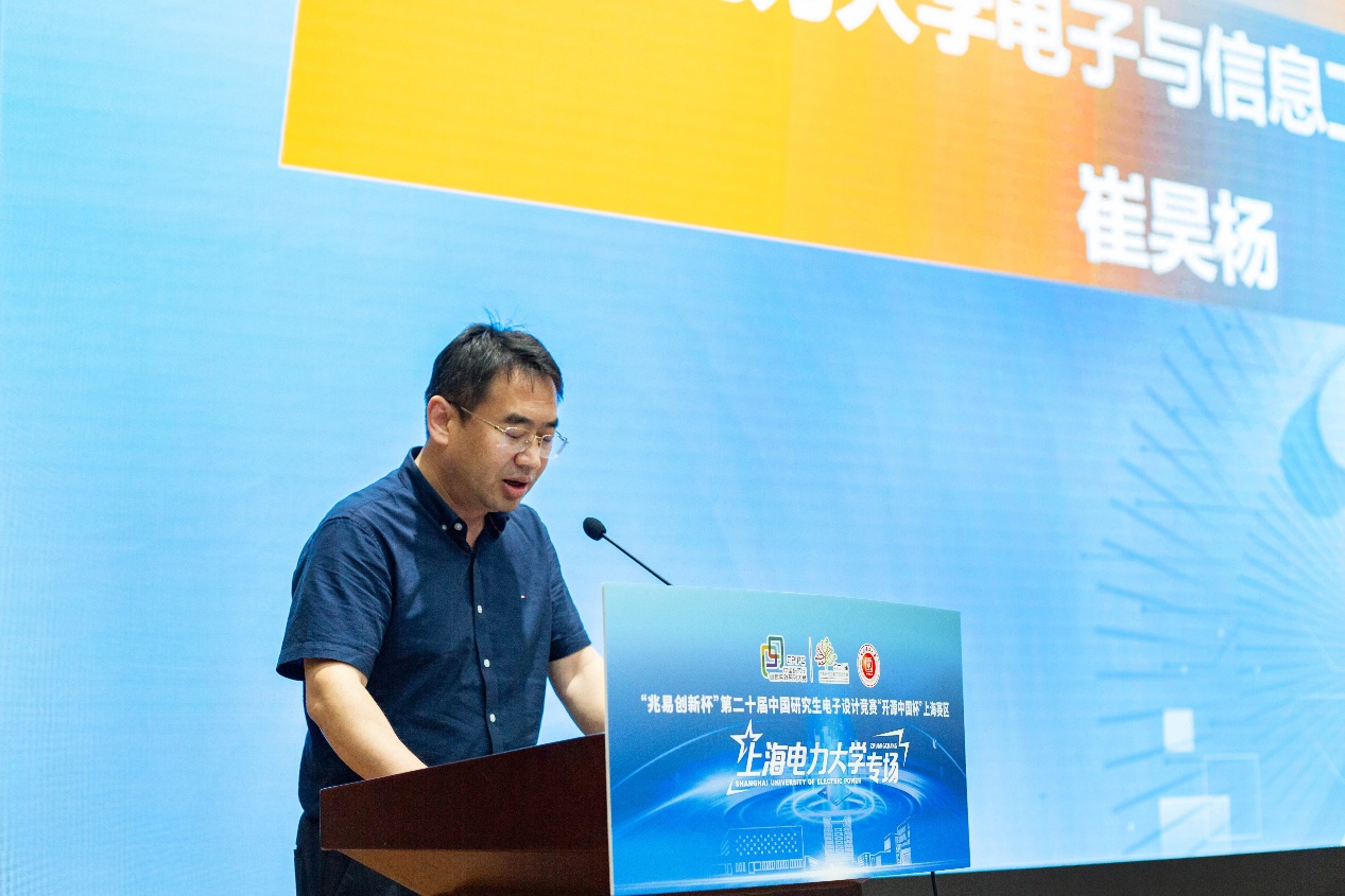 崔昊杨致开幕辞,他对出席活动的各位领导、嘉宾和师生们表示热烈欢迎,感谢竞赛组委会和企业对我校的信任和支持,为广大师生提供了学习交流的机会,强调“研电赛作为‘中国研究生创新实践系列大赛’顶级赛事,是提升工程实践能力、推动产学研深度融合的重要平台”;希望竞赛师生能够以服务国家需求为导向,通过“以赛促教、以赛促创”育人模式完善科创支持体系,勉励师生把握赛事机遇、勇于突破创新,力争在本届赛事中斩获更优异成绩。