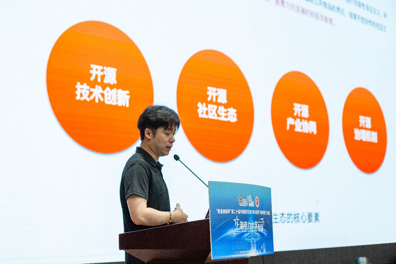 “微软最有价值专家”戴翔先生以《开源赛道指南》为题,阐释开源内涵,指出参与开源是能力成长的高效路径,分享自身在开源社区的成长经历与心得,并结合开源软件、硬件资源及比赛项目实例,讲解开源社区资源使用方法与交流技巧。