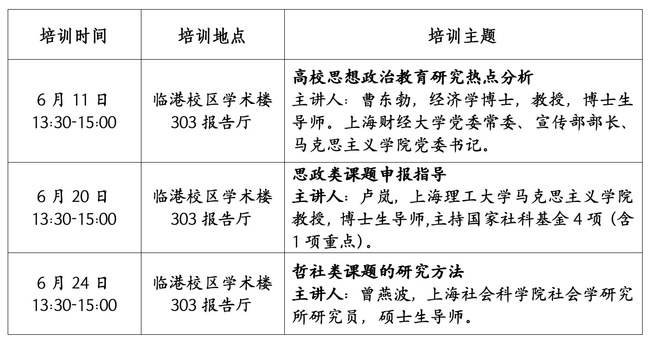 为进一步提升我校党的创新理论研究阐释水平,增强思政类课题研究水平,更好推进学校思想政治教育高质量发展,现举办我校思政类课题研究系列培训。6月份具体安排如下: