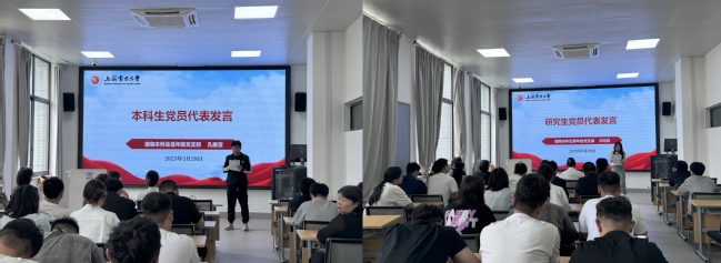 信物本科生低年级党支部本科生党员孔垂宝、信物本科生高年级党支部研究生党员刘可欣作为毕业生党员代表发言,他们饱含深情地回忆了在母校求学的时光,对学院党委的关怀培养、老师同学们的支持和陪伴表示了诚挚的感谢,表示要始终保持共产党员的先进性和纯洁性,在未来的工作和学习生活中勇于担当、甘于奉献,听党话、跟党走,在新的征程上行稳致远。