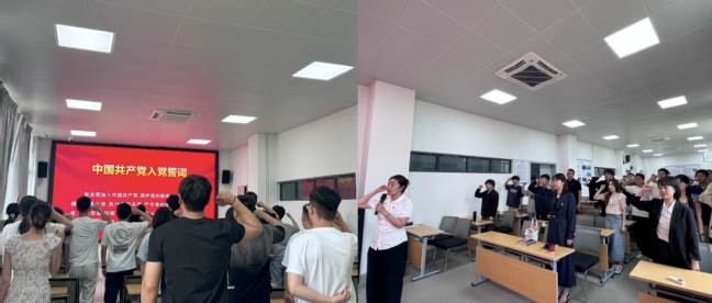 最后,物理学科研究生党支部书记项敏祎带领全体党员重温入党誓词,全体毕业生党员庄严宣誓,表达了始终坚定理想信念、牢记党的宗旨、严守党的纪律的坚定决心。