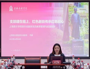 上海音乐学院组织员韦婧以《支部建在组上,红色剧目传承红色初心》为主题,分享了音乐戏剧系通过实施“支部建在组上”和打造“行走思政课堂”等加强党员教育管理与实践创新的有效经验。