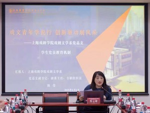上海戏剧学院组织员陈莹以《戏文青年学说行创新驱动展风采》为主题,介绍了戏剧文学系的创新学生党员教育机制,通过“学”创新理论入心田、“说”线上线下传心声、“行”创新实践建新功,将党的创新理论融入教学、创作与调研,引领青年党员在文化传承、乡村振兴等方面建新功。