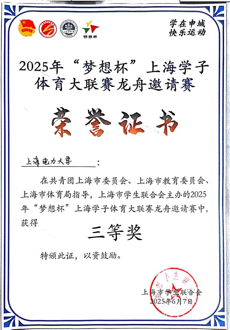 6月7日,2025年“梦想杯”上海学子体育大联赛龙舟邀请赛暨龙舟民俗文化体验活动在上海海事大学智慧湖畔举办。本次活动由共青团上海市委员会、上海市教育委员会、上海市体育局指导,上海市学生联合会主办,共青团上海海事大学委员会、上海海事大学体育教学部、上海海事大学学生会承办。来自上海19所高校的400余名师生齐聚一堂,共赴这场传统体育与民俗文化的盛宴。我校20名同学在数理学院团委书记康鸿轩的带领下参赛,与沪上其他兄弟高校的队员一同绽放青春活力。