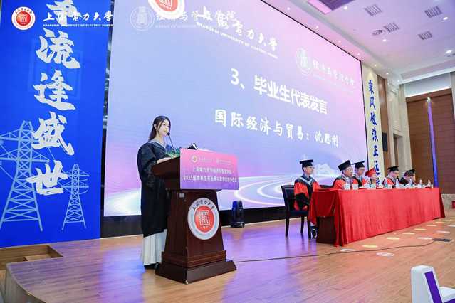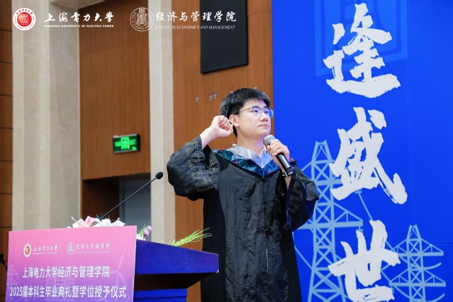 国际经济与贸易专业沈思利作为毕业生代表,深情回顾了在母校成长的经历,用成功和喜悦表达了对母校、老师和同学的感恩,她鼓舞同学们永葆敢想又敢为的锋芒,永续探索的热诚赤子之心!“数声风笛离亭晚,君向潇湘我向秦”。在时代的星河中,希望同学们未来都能以各自的光热和踏实的脚步,共同支撑起社会前行的脊梁,点亮属于自己的平凡星辰。