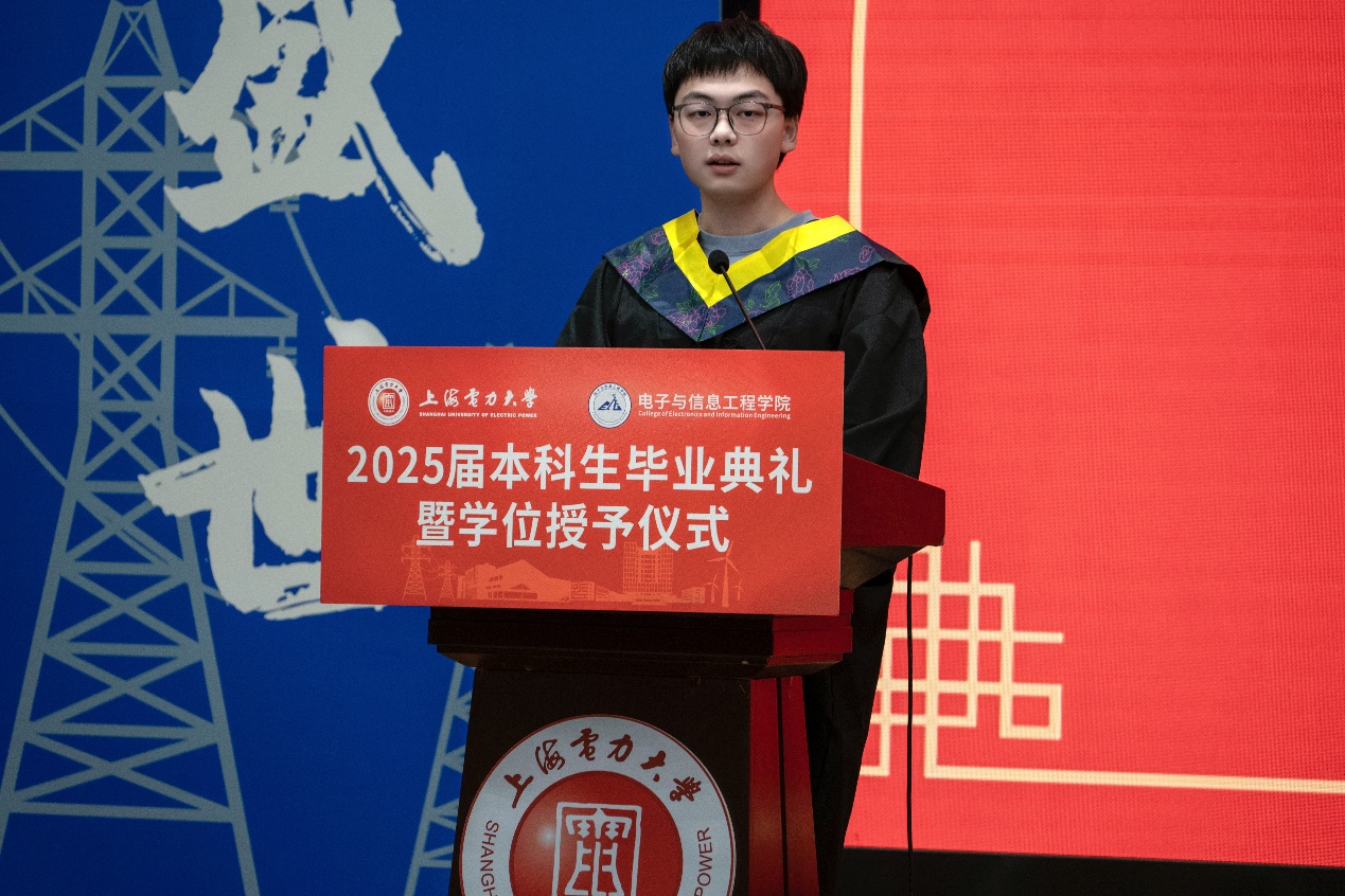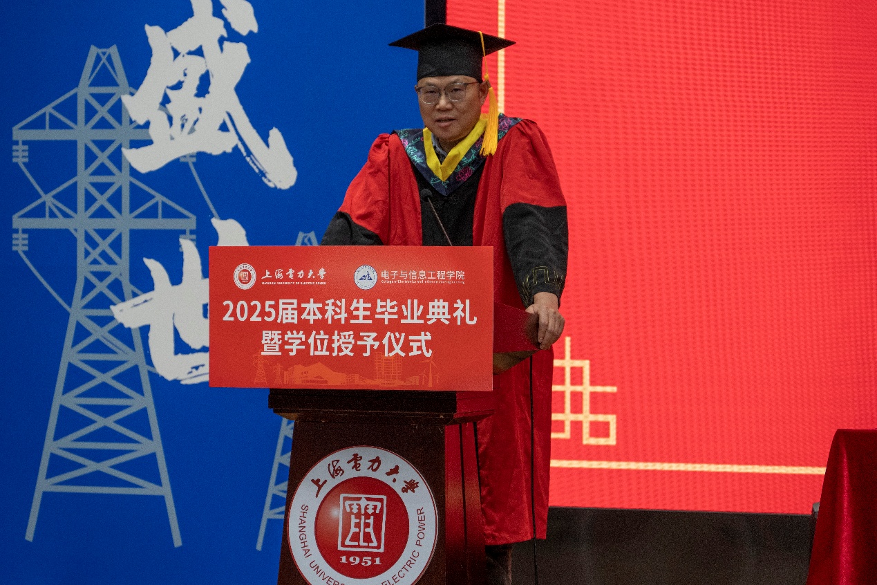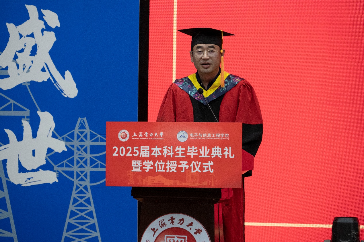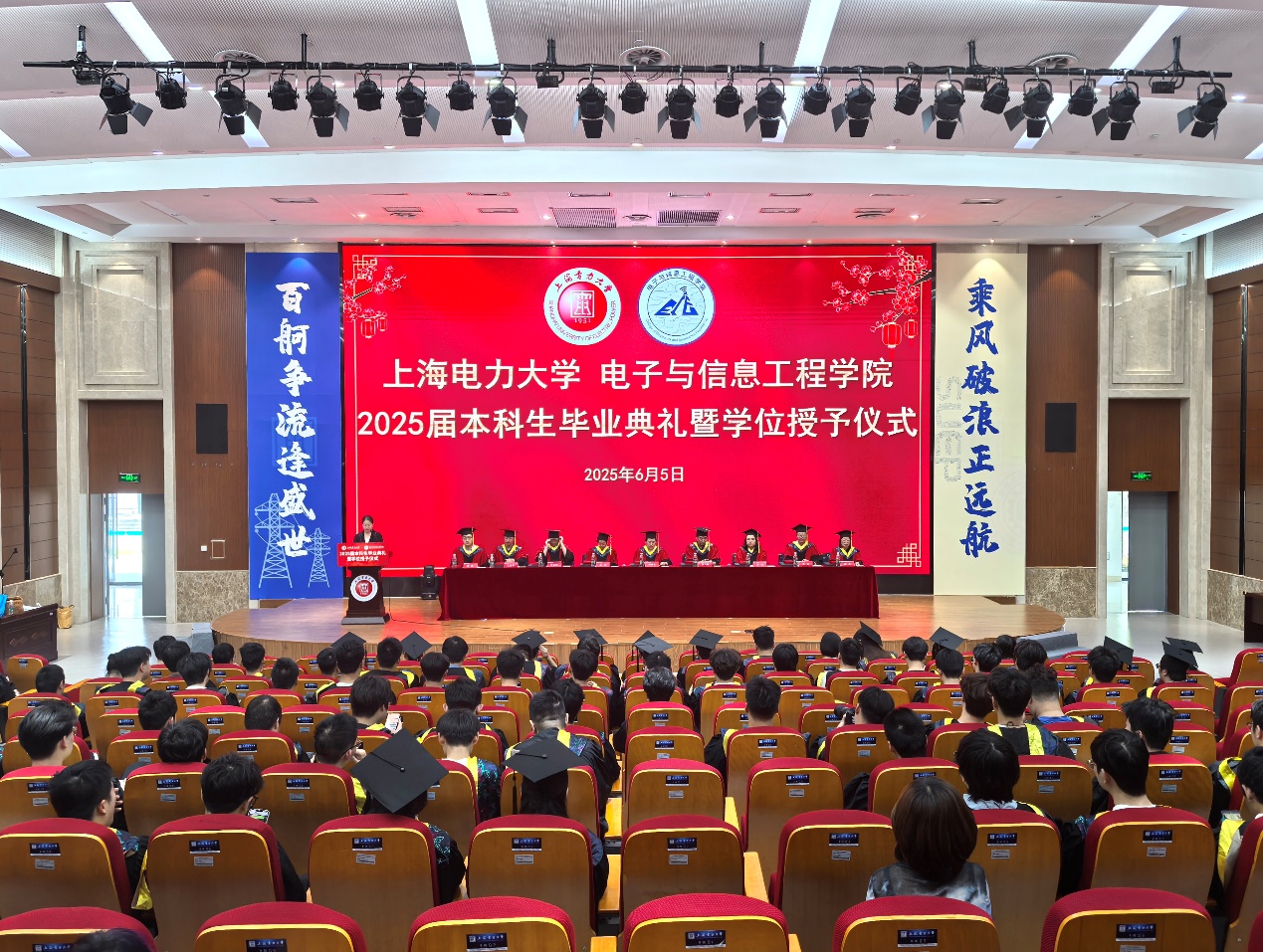 青春逐梦绽芳华,学涯扬帆启新章。6月5日下午,电子与信息工程学院2025届本科生毕业典礼暨学位授予仪式在浦东校区学术楼117报告厅举行。学院党委书记何西培、院长崔昊杨、党委副书记周冬梅、副院长赵琰、副院长薛亮、各专业负责人出席,学院教师代表、2025届全体毕业生和家长共同见证学院毕业生的高光时刻,280余名毕业生圆满完成学业,踏上人生新的征程。毕业典礼由周冬梅主持。