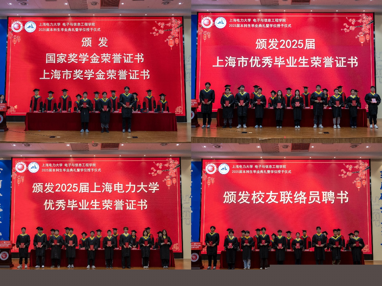 学院对在学习、科技竞赛、文体活动等各个方面取得优异成绩的学生进行表彰。何西培宣读《关于表彰2025届本科生国家奖学金、上海市奖学金获奖学生的决定》,赵琰宣读《关于表彰2025届上海市普通高等学校优秀毕业生的决定》,薛亮宣读《关于表彰2025届taptap官方版下载安装优秀毕业生的决定》。光电信息科学与工程专业系主任朱武宣读《电子与信息工程学院关于聘任2025届“校友联络员”的决定》,学院领导老师们颁发聘书并为毕业生赠送毕业纪念品。