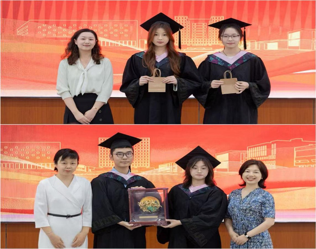 余嘉向毕业生代表赠送毕业礼物,祝福同学们“语通四海·诠释世界·成就未来”。毕业生代表向学院敬献礼物,感谢对母校的培育之恩。