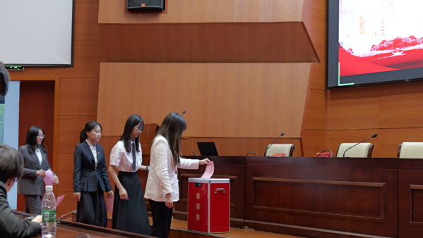 全体与会代表以无记名投票的方式分别选举产生院新一届学生会主席团成员、院新一届研究生会主席团成员和学生常任代表。全彭莹、陈俊洁、邹婧杰当选院新一届学生会主席团成员。马雯、张豪、唐开元当选院新一届研究生会主席团成员。王婧、王馨诒等12名学生代表当选院新一届学生常任代表。