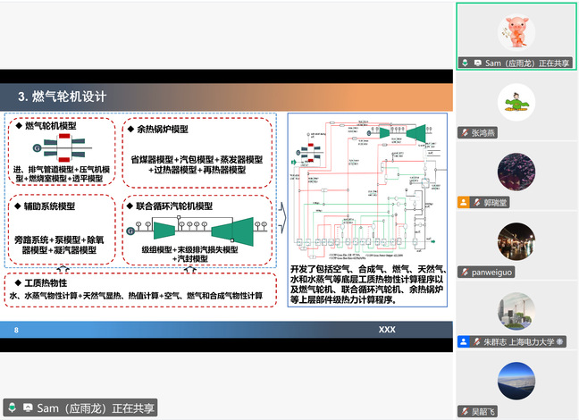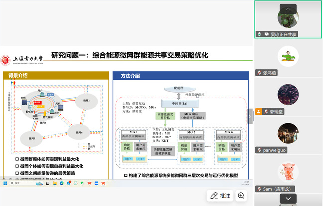 在学术交流环节,应雨龙副教授以《燃气轮机发电关键技术研究进展》为题,分享了团队在重型燃气轮机关键技术的研究突破。通过“设计-仿真-实验-运维”闭环,开发全流程仿真工业软件,提出基于“部件健康参数”的新型诊断指标,突破传统运维局限。吴琼教授级高工则围绕《综合能源系统规划设计和运行优化》,介绍了“微网群-聚合商-配网”三层次优化模型,通过智能算法与碳普惠机制实现“能-碳”协同优化。其团队基于LEAP模型开展城市级能源规划,提出动态碳排放因子计算方法,并探索充电桩选址与V2G技术的“经济性-韧性”双目标优化,推动综合能源系统向智能化、低碳化升级。