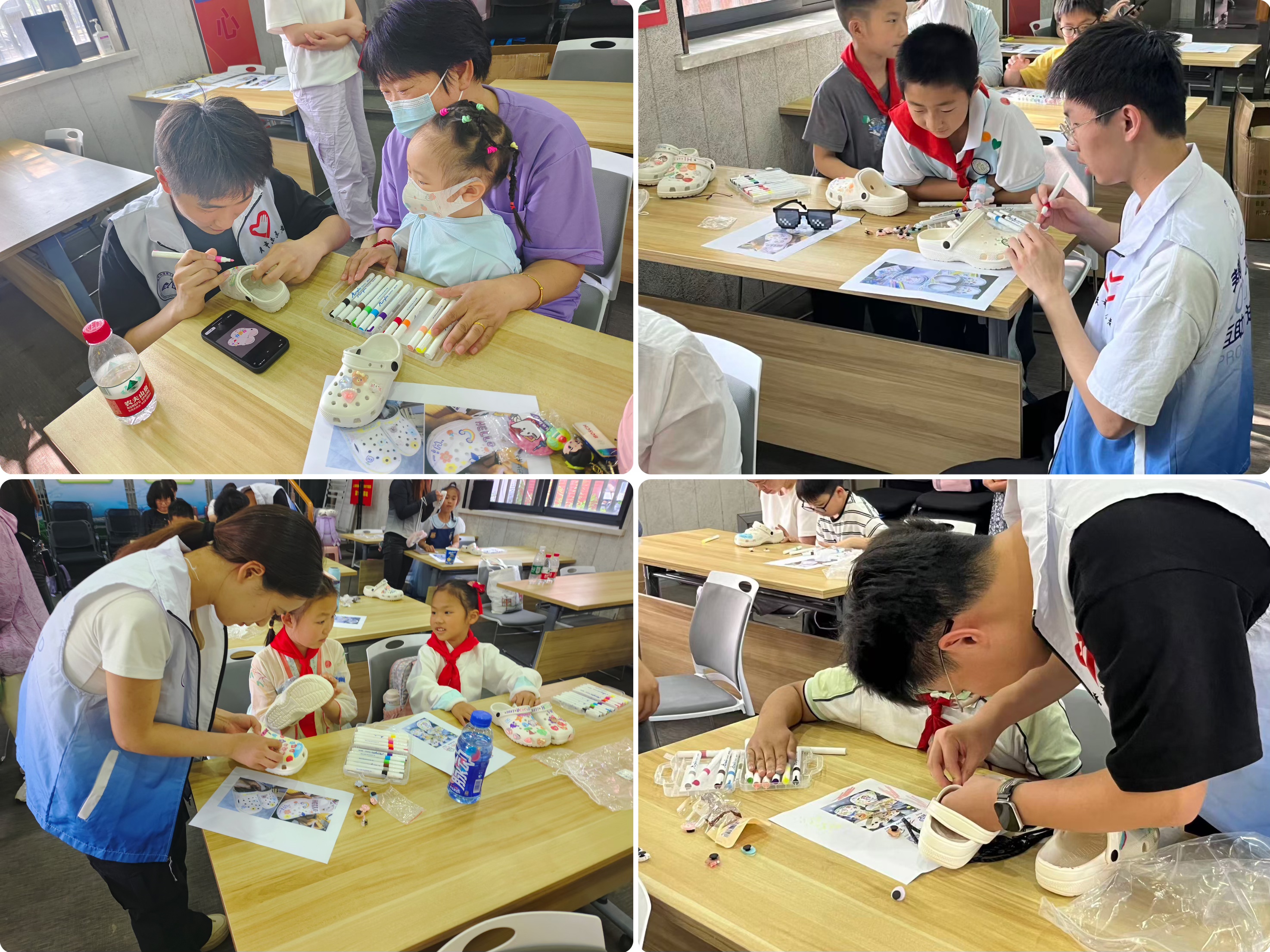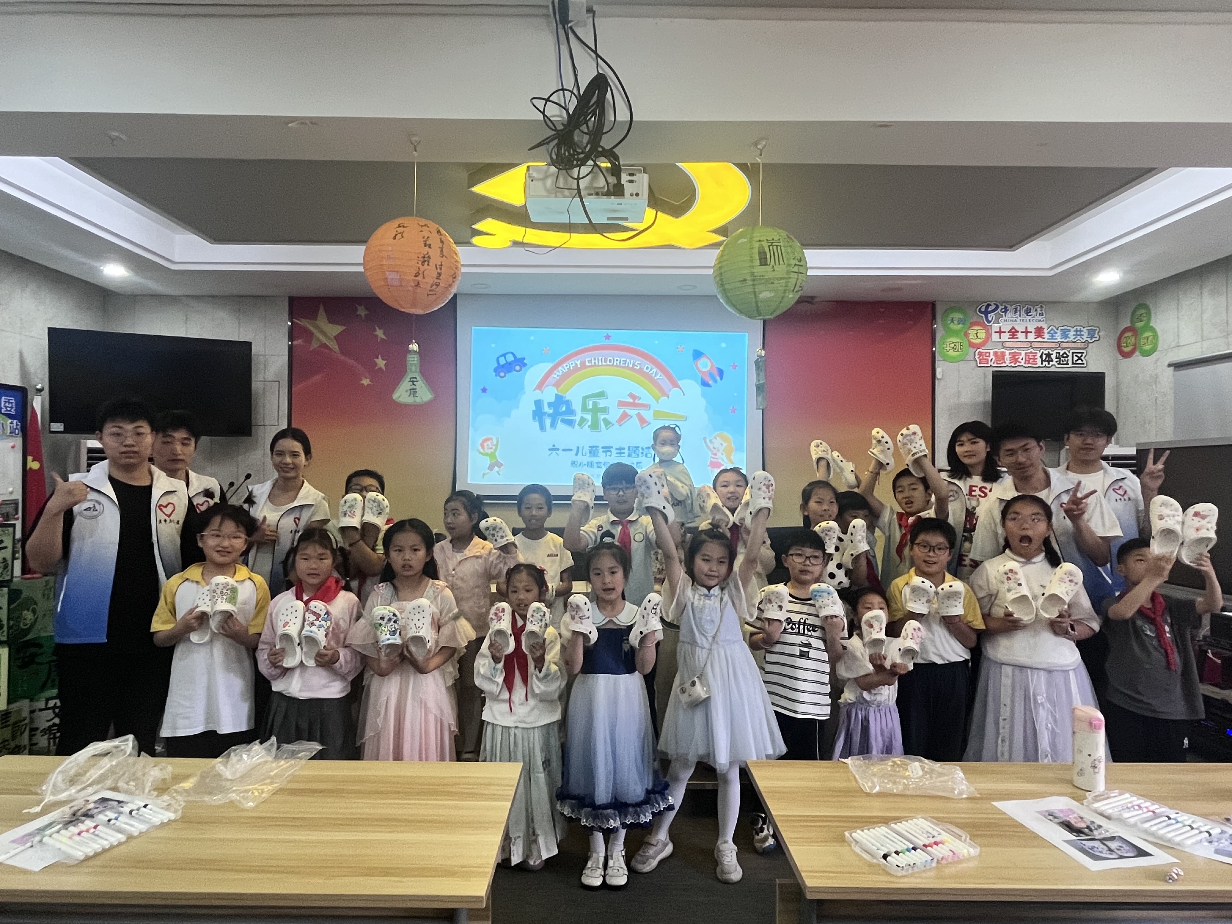 青年党员与海汇居民区的小朋友们共同开展了“彩绘洞洞鞋”互动体验。孩子们在青年党员的引导下用画笔描绘梦想、填涂希望,一双双普通的白鞋在色彩与童真的交融中焕发出独特光彩。这不仅是一场富有创意的手工活动,更是一堂润物无声的成长课程,青年党员在陪伴中传递“脚踏实地、勇敢逐梦”的价值理念,引导孩子们从“足”下出发、走好人生的每一步,让一双双彩绘鞋成为他们多彩童年的见证与起点。