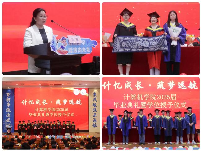 6月6日下午,计算机科学与技术学院2025届毕业典礼暨学位授予仪式在临港校区学术楼举行。学院党委书记魏建华、院长温蜜、常务副院长张传林、副院长李晋国、院党委副书记齐永晓、教学秘书徐曼、计算机系主任叶文珺、院实验中心主任刘大明、教授毕忠勤,以及毕业班全体辅导员、2025届本研毕业生共同参加。典礼由齐永晓主持。
