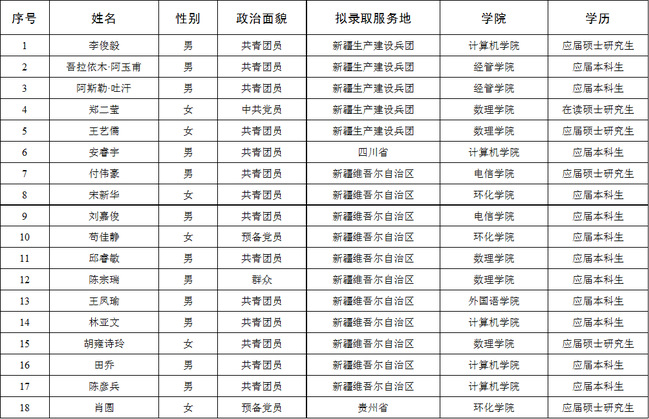 公示时间:6月18日-24日,公示期间如有异议,请向我校西部计划项目办反映。